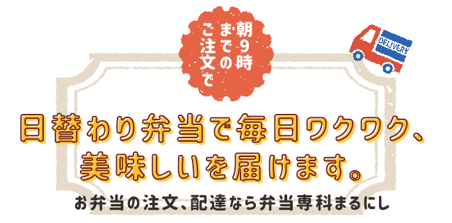 大阪府泉大津市全域をはじめ、泉市・岸和田市・高石市の一部地域に対応します。お弁当の注文・配達なら弁当専科まるにしにお任せください。